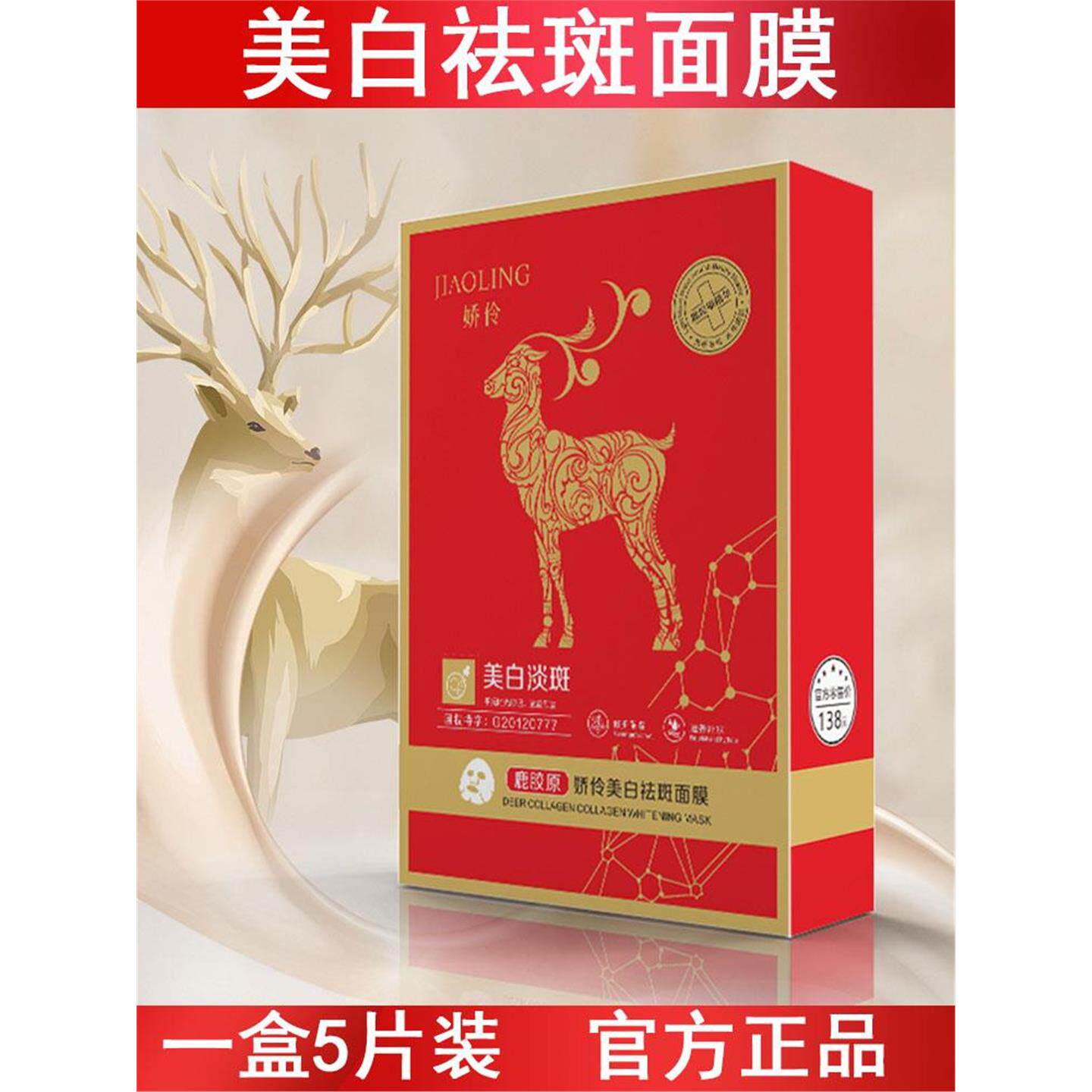 娇伶鹿胶原美白面膜5片装国妆特字温和不刺激孕妇可用