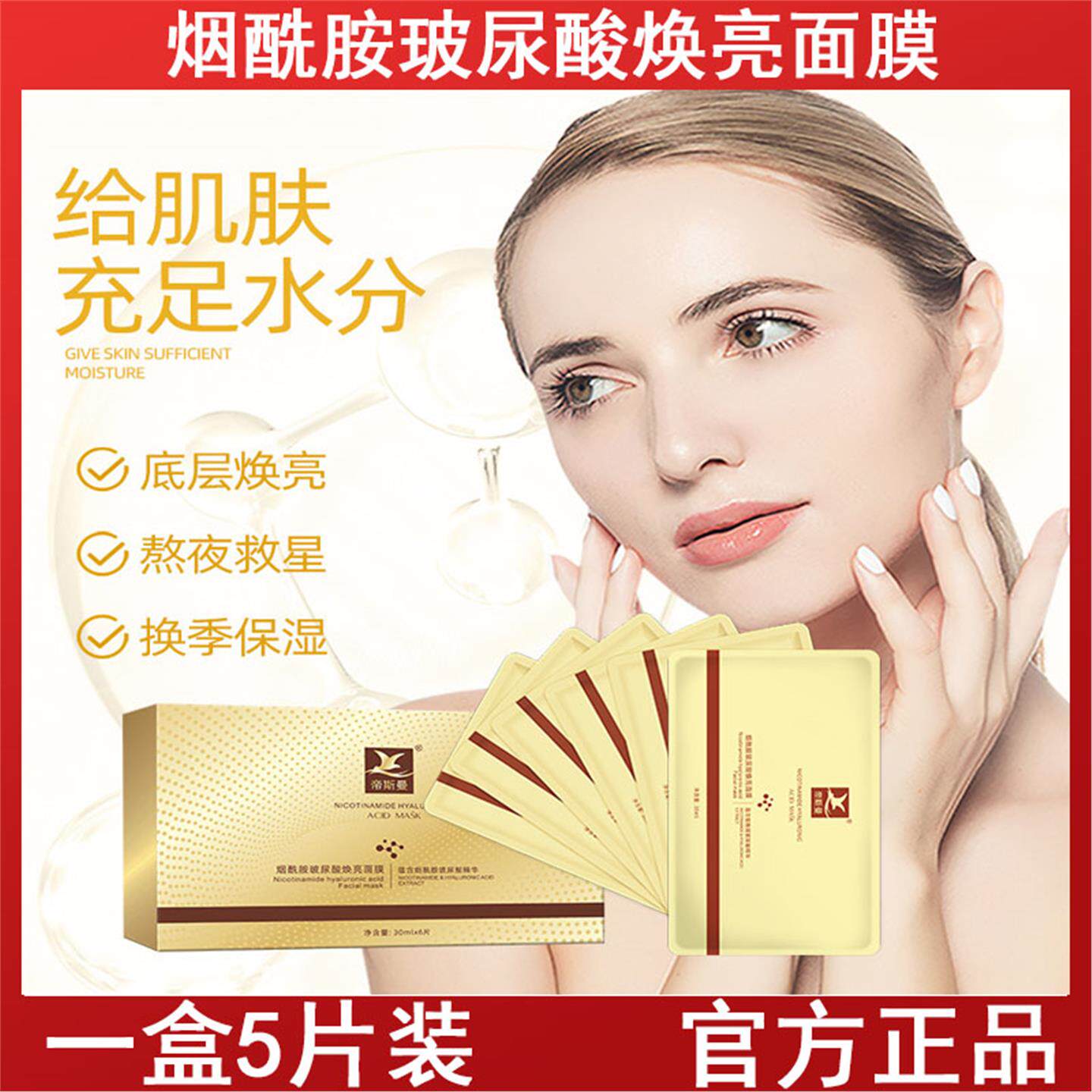 烟酰胺玻尿酸焕亮补水保湿面膜5片盒装晒后提亮肤色干燥肌肤修护