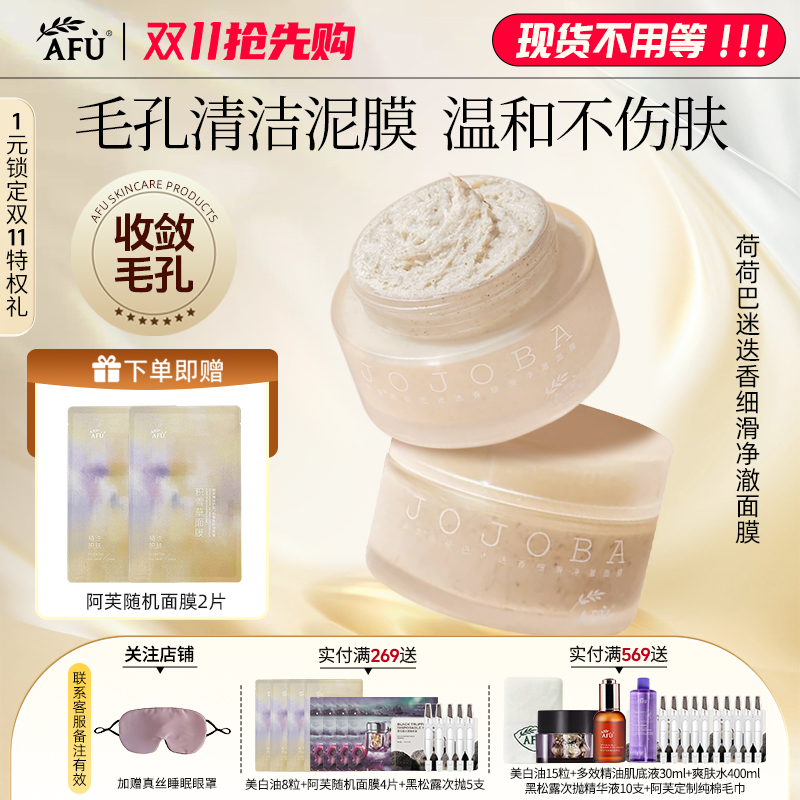 阿芙荷荷巴清洁泥膜去角质去黑头缩小毛孔涂抹式面膜温和嫩肤正品
