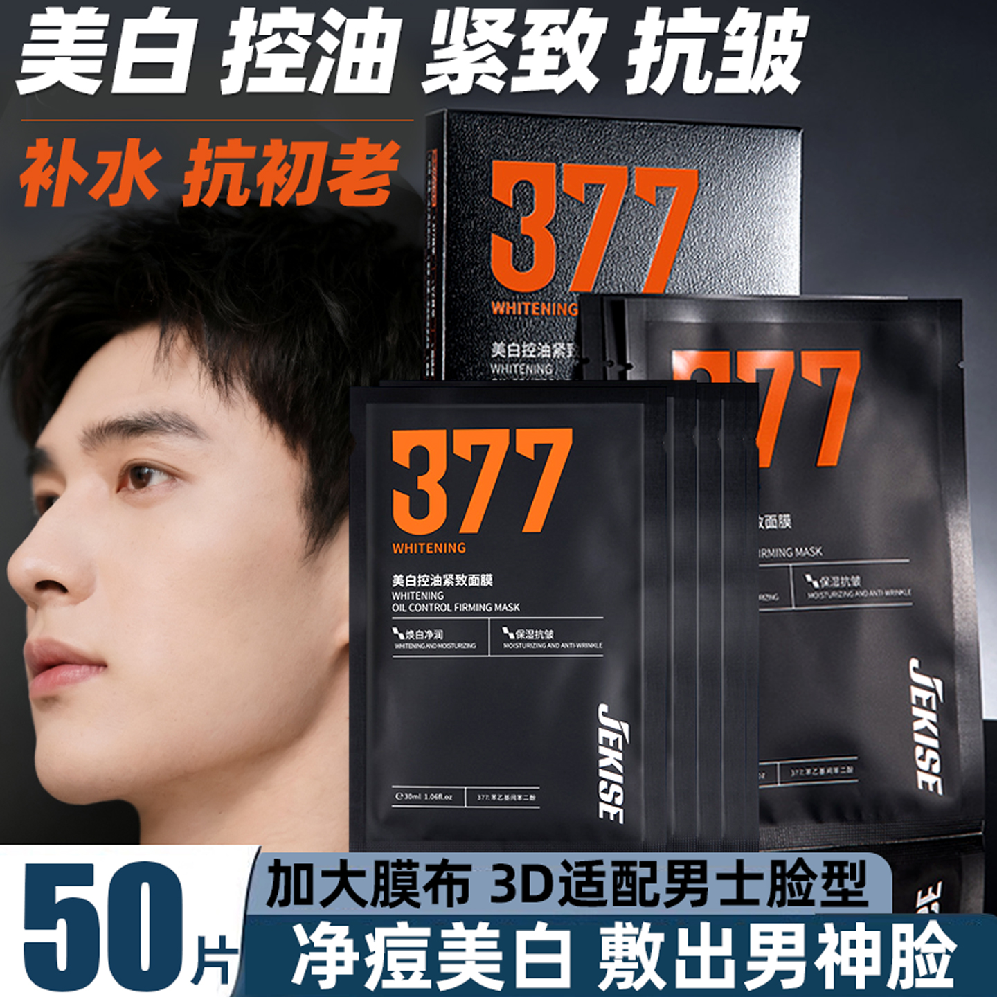 377男士美白面膜美白控油紧致抗皱祛痘淡化痘印补水保湿收缩毛孔