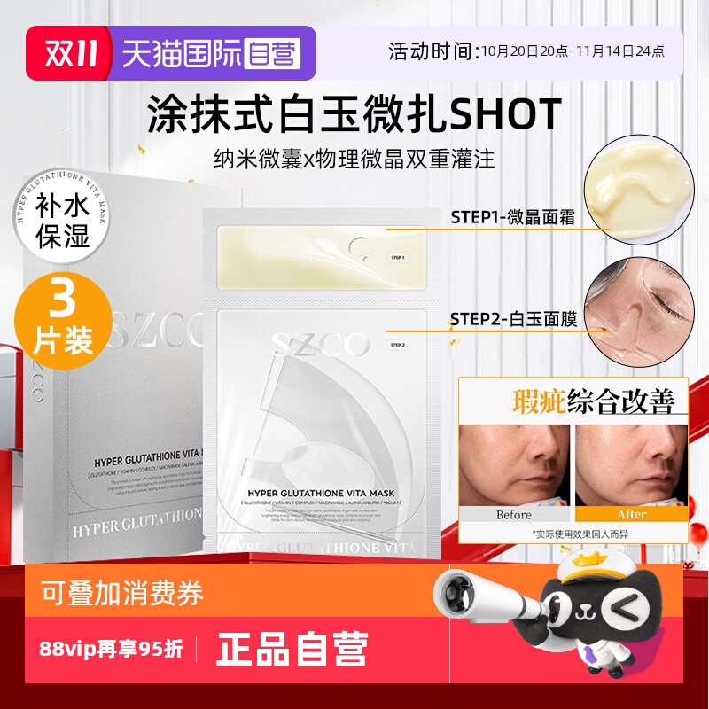 【自营】SZCO丹宜诗谷胱甘肽白玉微针面膜3片/盒涂抹脸部水光保湿