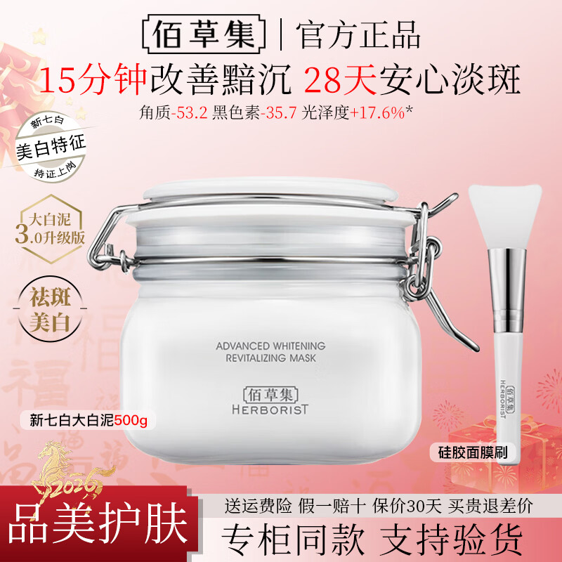 佰草集大白泥3.0 新七白美白透亮白泥面膜 祛斑提亮去角质修护涂抹泥膜 【3.0】祛斑美白大白泥500g