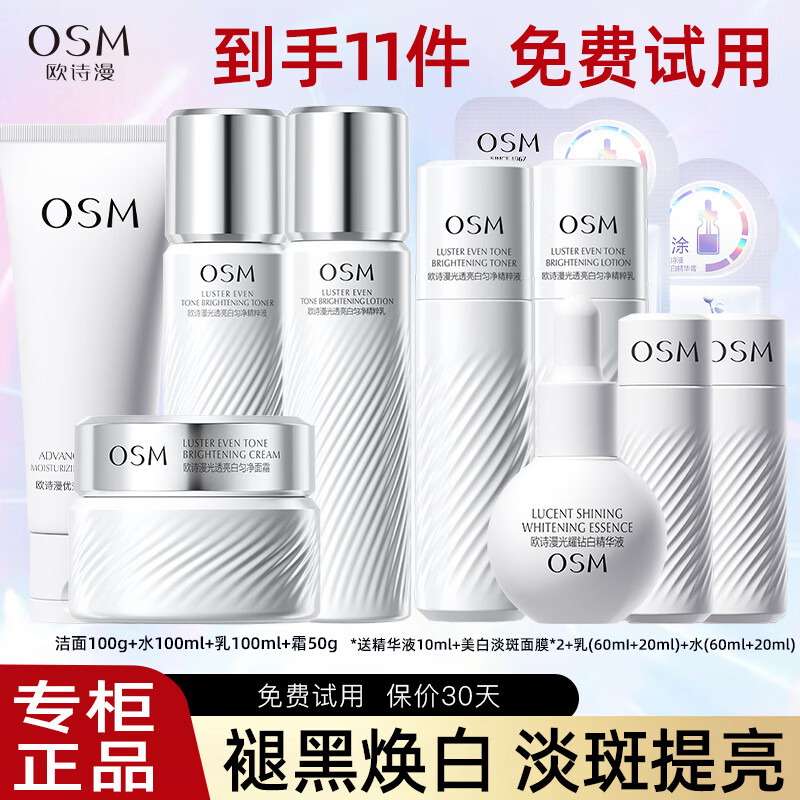 欧诗漫(OSM)美白淡斑护肤品套装光透亮白精粹珍白水乳因生日礼物 洗+水+乳+面霜+精华+面膜