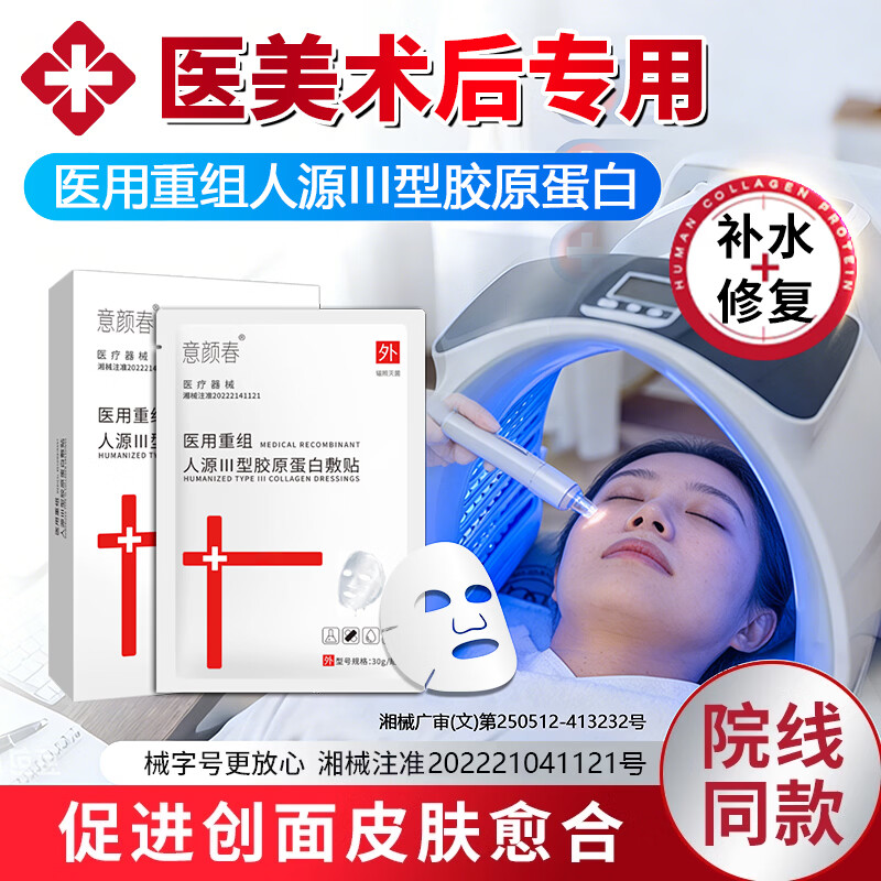 意颜春医用冷敷贴重组胶原蛋白人源医美术后水光针修护敷料面膜型械字号 深补水 3盒共15片医用重组胶原蛋白【护理装】 1