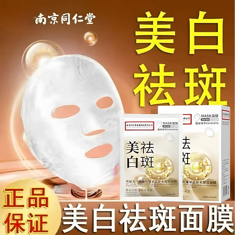 南京同仁堂医用美白淡斑面膜抗皱紧致美白补水保湿去黄气暗沉冷敷贴祛斑面膜 一盒媄颜美白祛斑抗皱面膜(金色)新包装