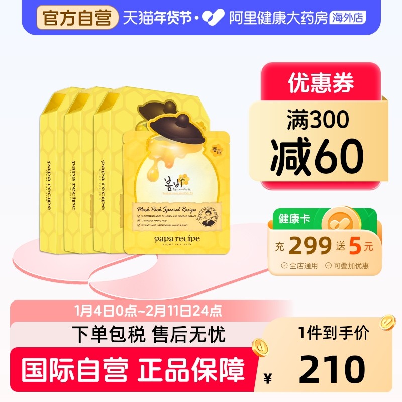 韩国paparecipe黄春雨蜂蜜倍润面膜补水保湿舒缓提亮官方正品30片