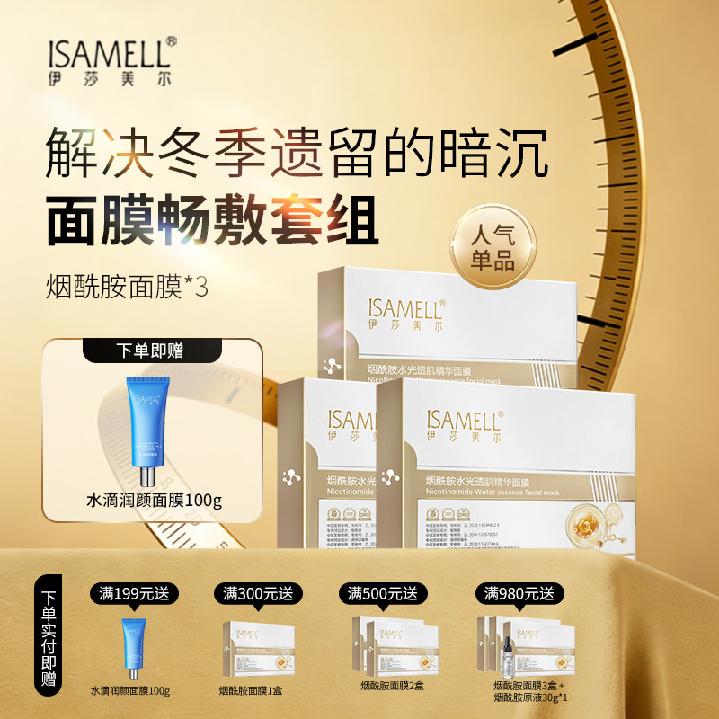 【315限时抢】伊莎美尔烟酰胺水光透肌精华面膜3盒装水润焕肤