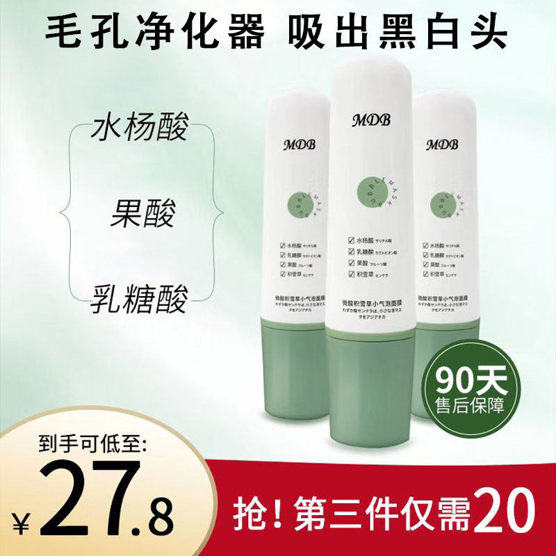 mdb微酸积雪草小气泡面膜黑头收缩毛孔水杨酸自发泡清洁泥膜女