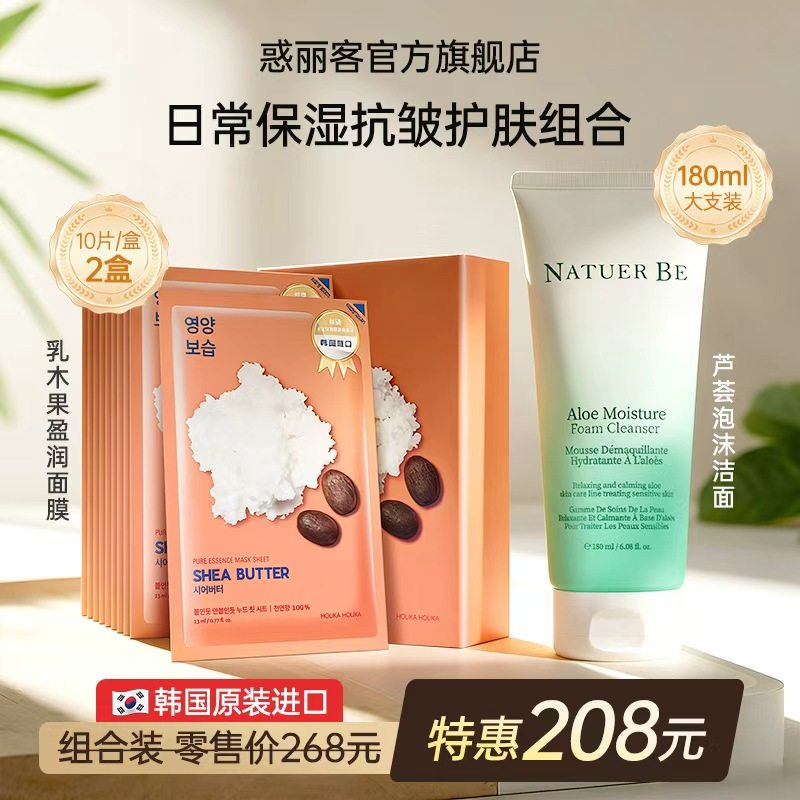 HOLIKA惑丽客乳木果抗皱面膜10片/盒*2+180ml大瓶韩国进口洗面奶