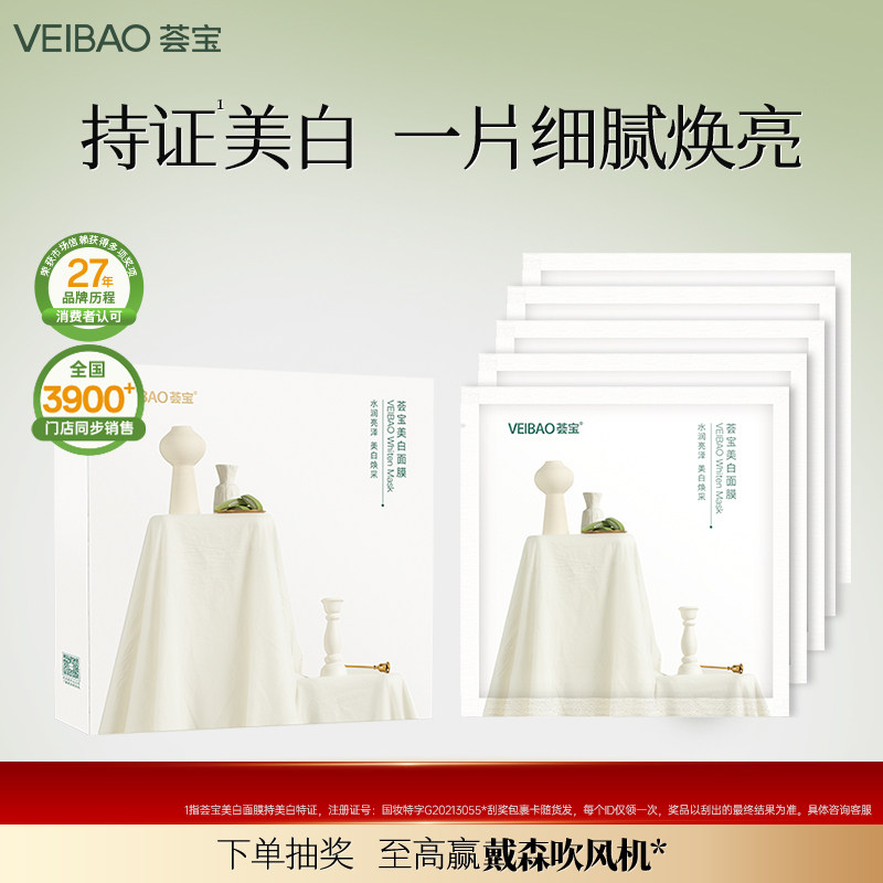 VEIBAO/荟宝官方旗舰店芦荟美白淡斑面膜补水保湿去黄提亮护肤女