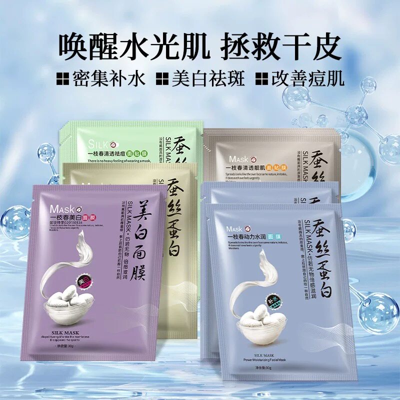 一枝春蚕丝蛋白面膜补水保湿控油舒缓护肤品男女学生官方旗舰店正