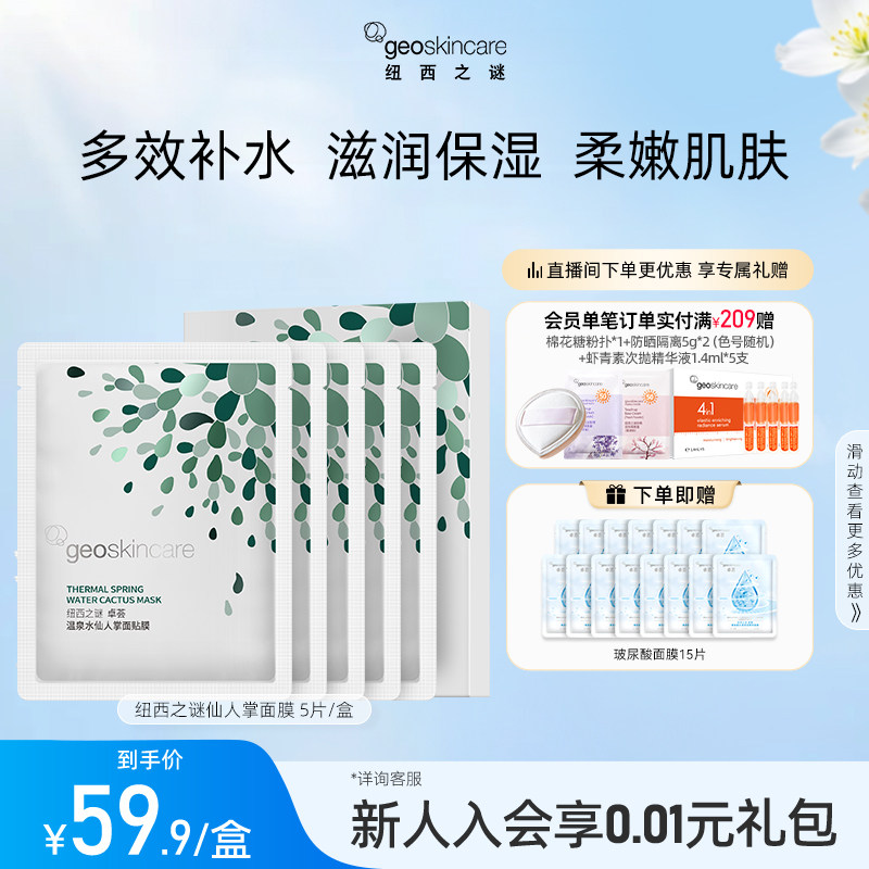 【1次到手20片】纽西之谜卓荟温泉水仙人掌面膜补水保湿贴片面膜