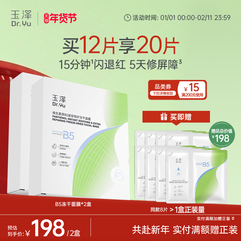 玉泽B5冻干面膜退红晒后舒缓修护屏障保湿缓解干燥面膜