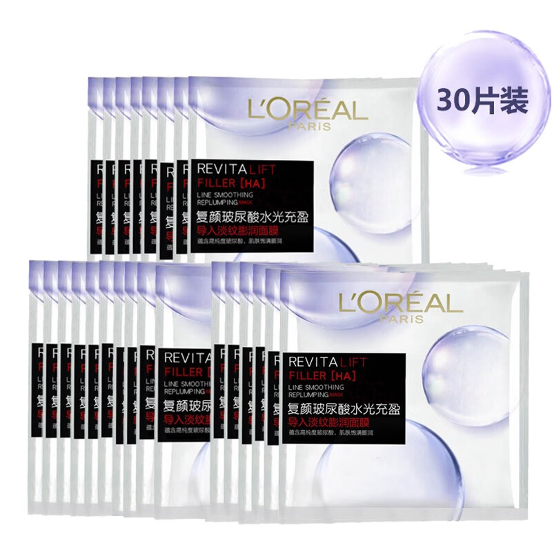 欧莱雅(LOREAL)复颜玻尿酸水光充盈导入淡纹膨润面膜保湿抗皱紧致舒缓面贴膜女 复颜玻尿酸导入淡纹膨润面膜30片