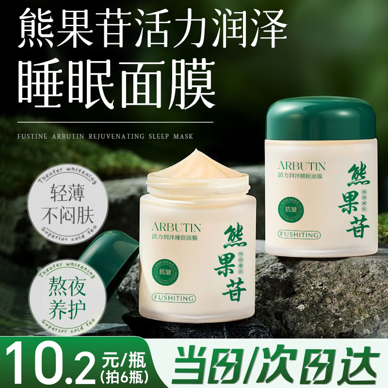 芙诗婷熊果苷睡眠面膜免洗抗皱紧致美肤白补水保湿去黄提亮收缩毛孔晚上 熊果苷免洗睡眠面膜100ml*2 100g/瓶