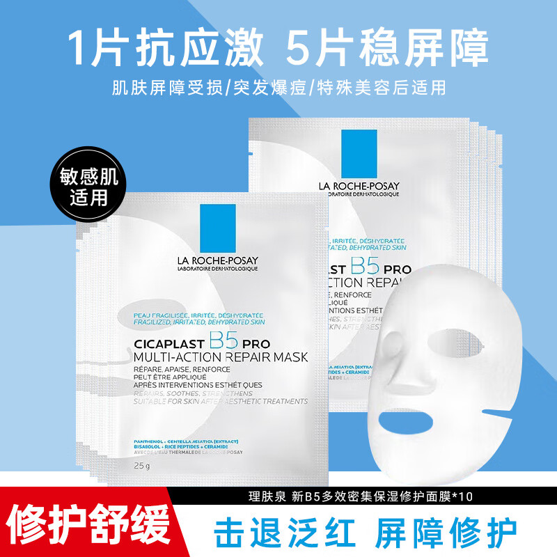 理肤泉(LA ROCHE-POSAY)b5面膜女积雪草精华补水保湿修护泛红舒缓敏感痘印熬夜护肤品 B5面膜PRO10片