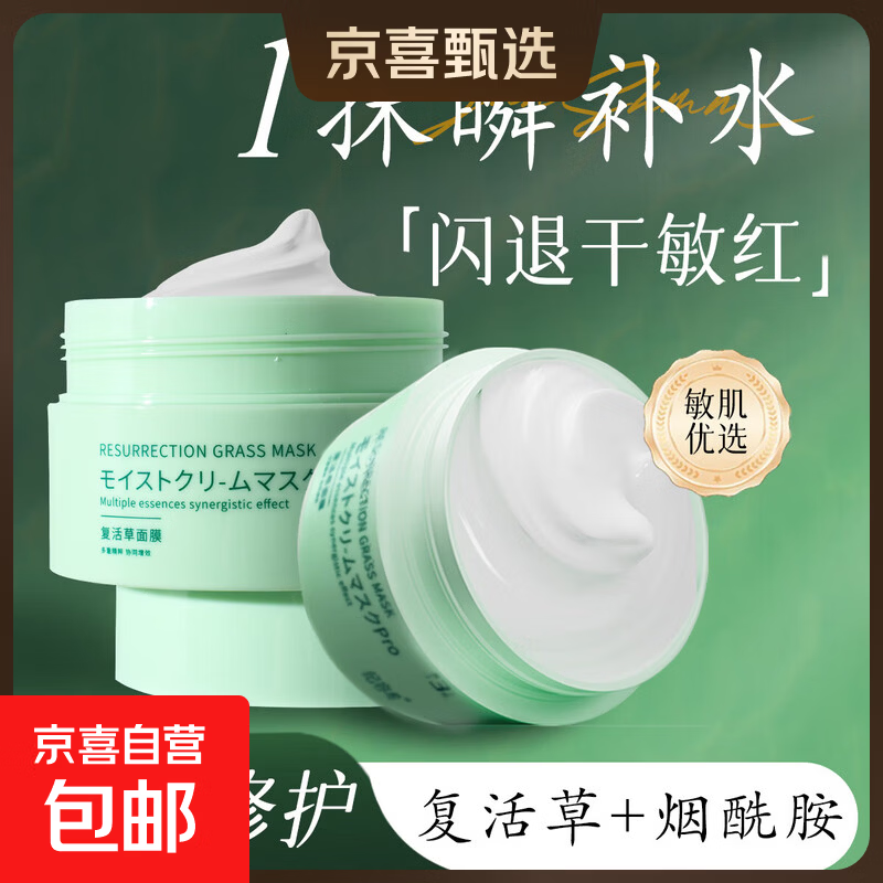 日本复活草涂抹式泥膜深层清洁补水抗皱紧致提亮肤色保湿面膜男女 两盒装