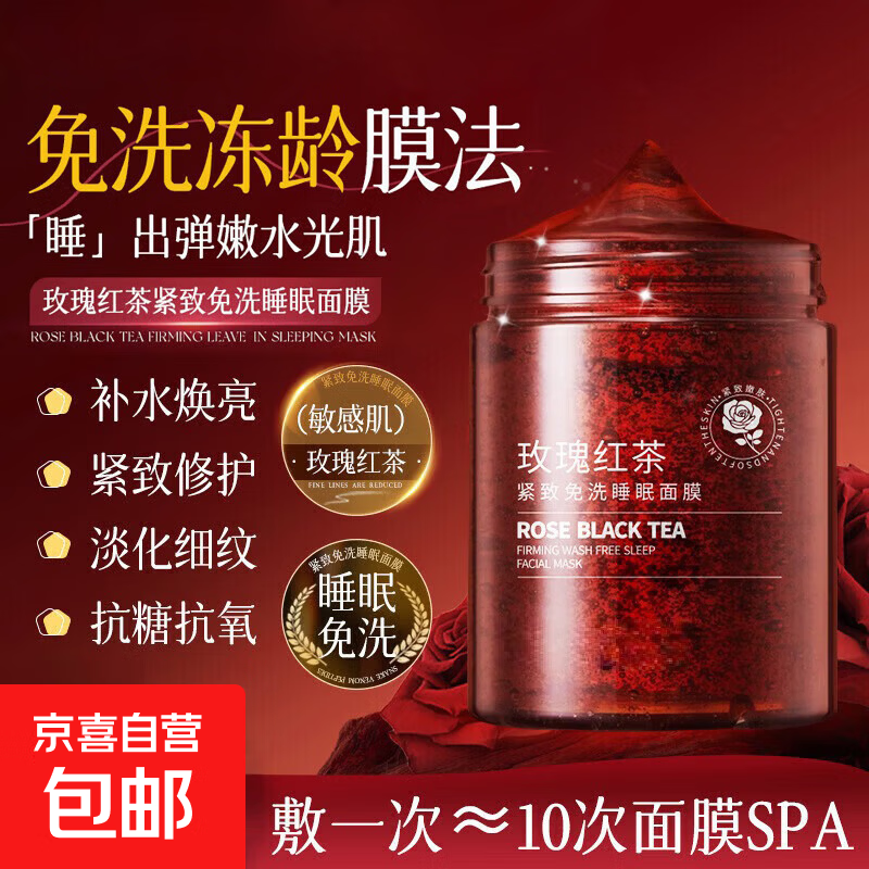 玫瑰红茶紧致免洗睡眠面膜抗皱淡纹熬夜提亮保湿补水冻膜 玫瑰红茶紧致免洗睡眠面膜100g*3【3罐】