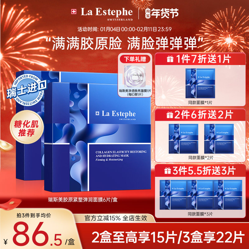 【全新升级】瑞斯美骨胶原蛋白面膜抵御糖化熬夜肌瑞士进口6片/盒