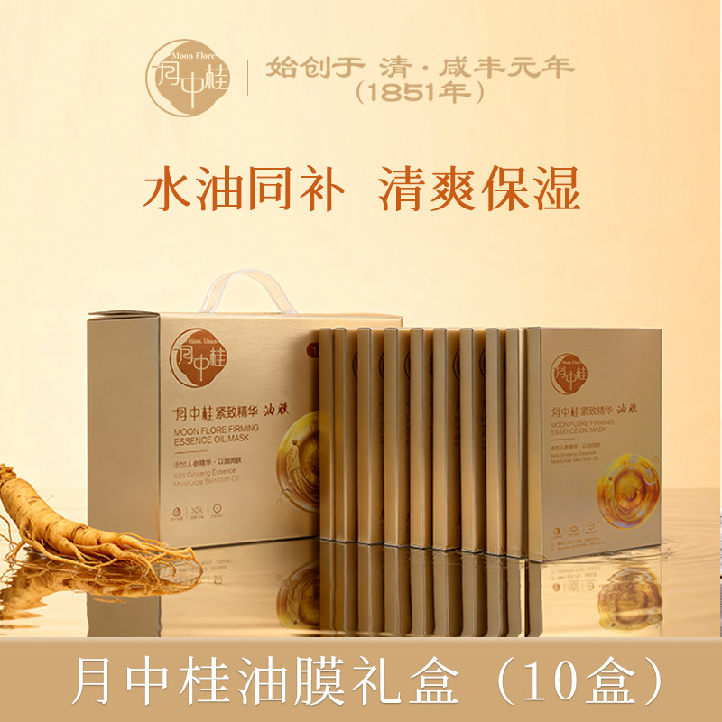 月中桂参芝精致精华油敷面膜补水保湿滋润水油同补礼盒旗舰店10盒
