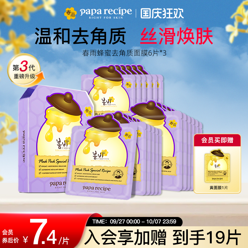 韩国paparecipe春雨蜂蜜去角质深层清洁毛孔脸面部死皮紫面膜18片