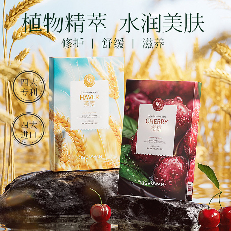 燕麦富勒烯营养保湿面膜贴樱桃烟酰胺提亮水光面膜水润嫩贴片面膜