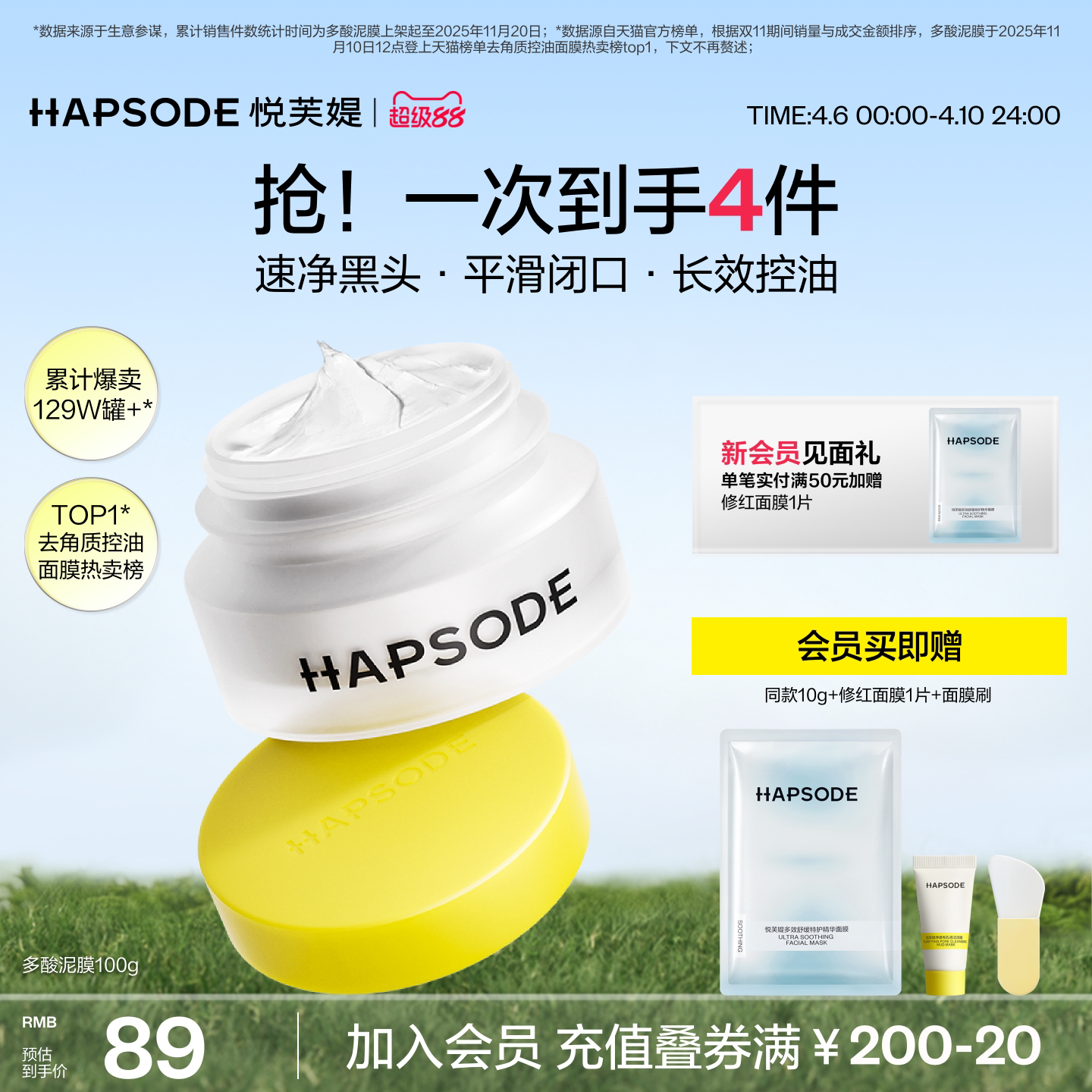 悦芙媞多酸清洁泥膜深层清洁油皮面部去黑白头收缩毛孔白泥面膜