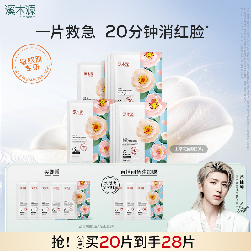 溪木源山茶花面膜补水保湿舒缓修护敏感肌奶皮贴片面膜女学生军训