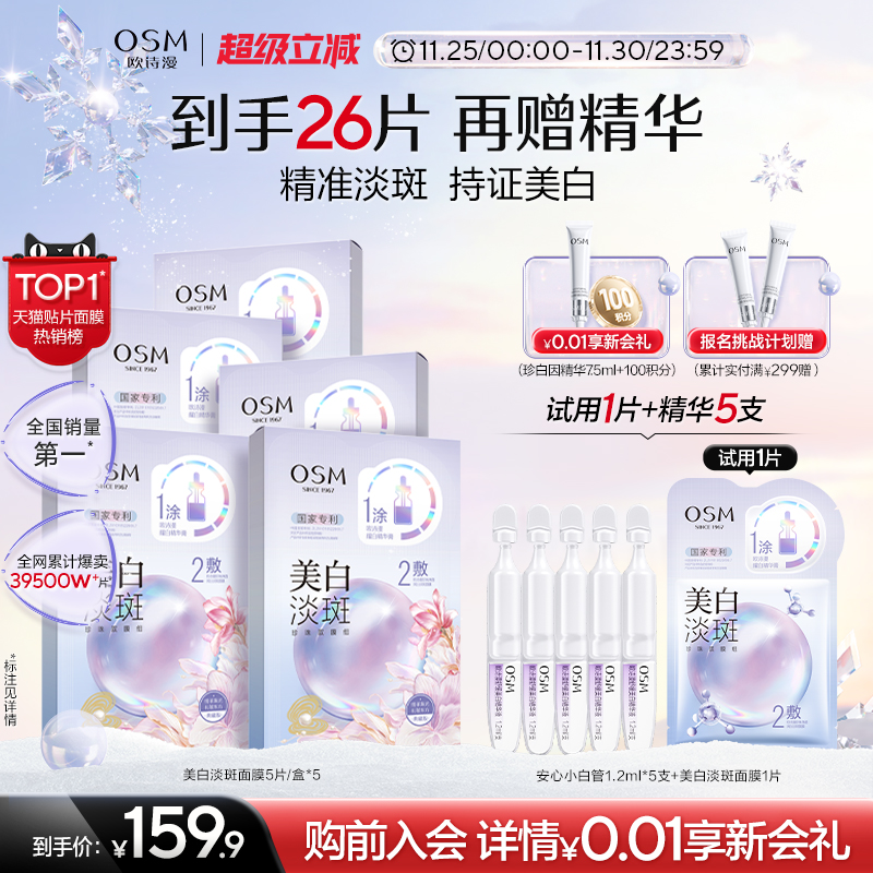 欧诗漫珍珠美白淡斑面膜珍白因Pro光甘草定提亮熬夜去黄暗沉提亮