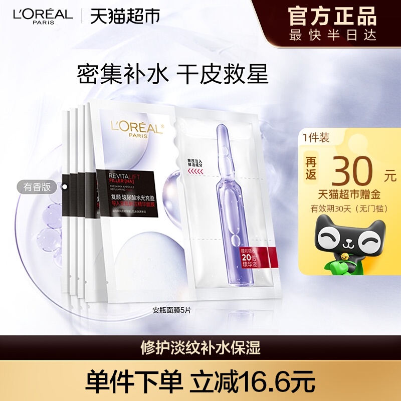 欧莱雅安瓶面膜玻尿酸提亮肤色补水保湿淡化细纹精华女