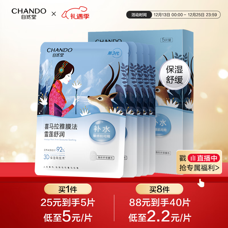 自然堂喜马拉雅补水面膜40片(百合雪莲紫草龙胆植萃面膜)保湿圣诞礼物