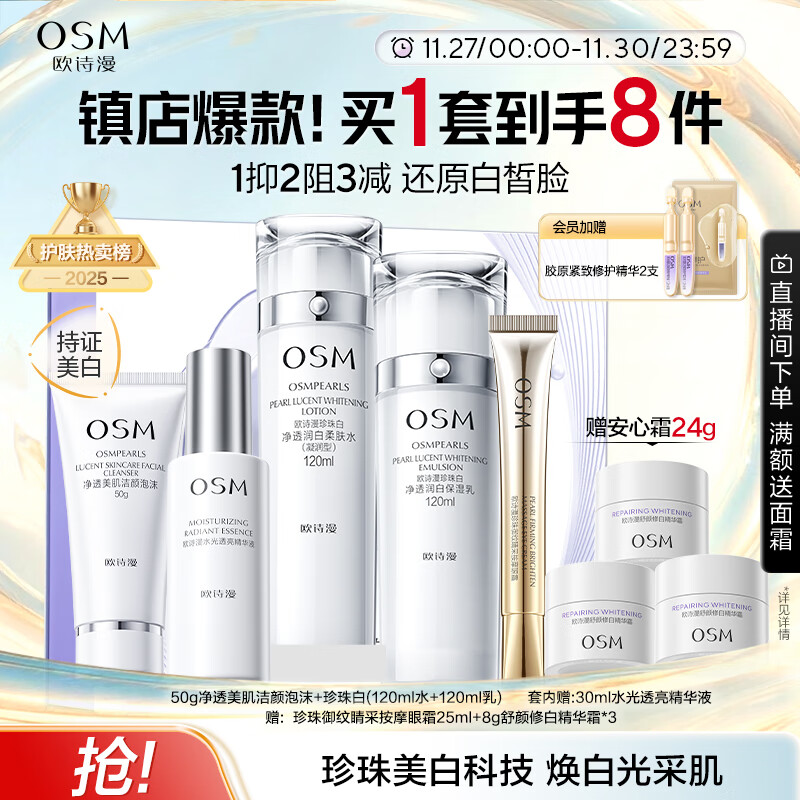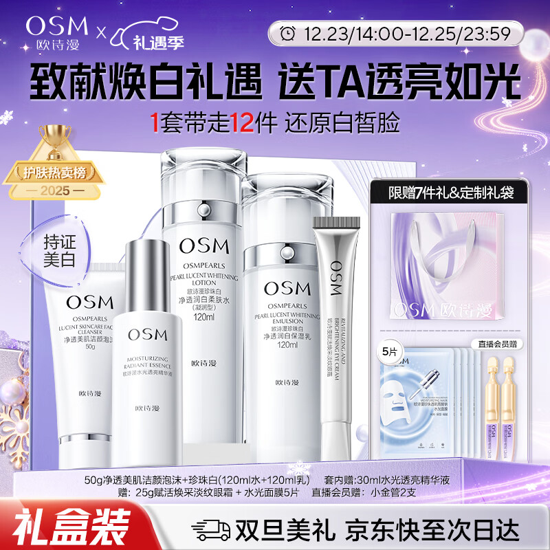 欧诗漫(OSM)珍珠白洁面爽肤水乳液精华套装美白淡斑护肤品面膜眼霜圣诞礼物