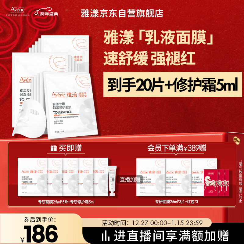 雅漾(Avene)专研保湿修护面膜15片 舒缓修护泛红高保湿乳液敏肌 礼物男士女士