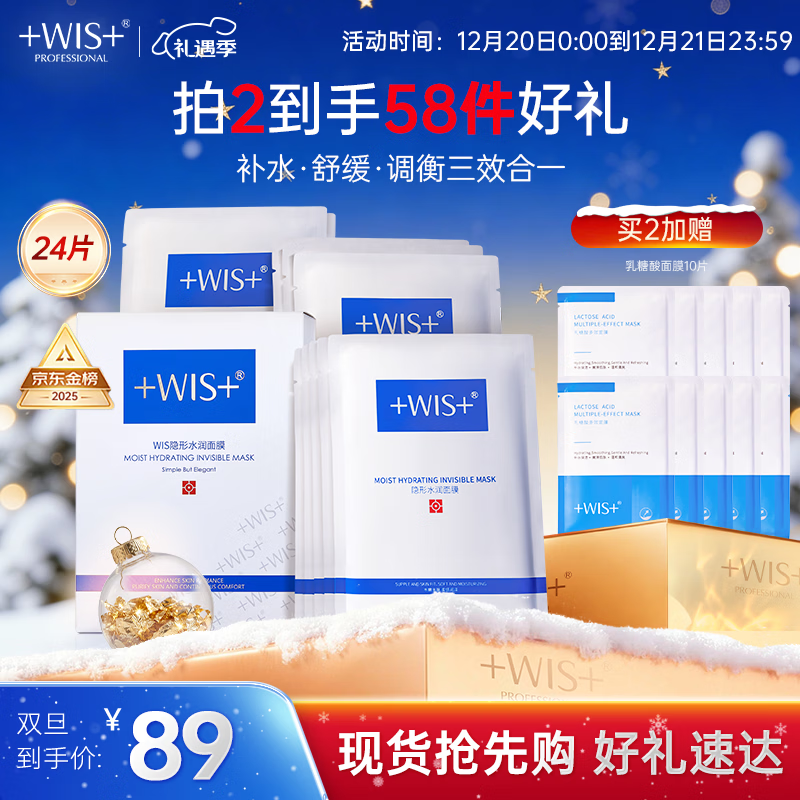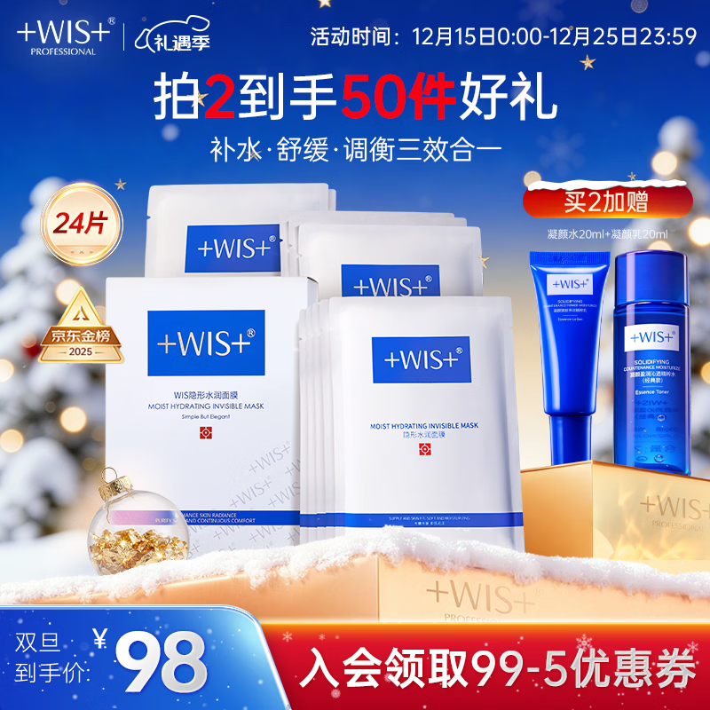 WIS水润面膜24片补水保湿舒缓抗皱紧致晒后修护护肤品圣诞礼物送礼