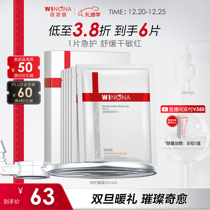 薇诺娜特护面膜舒敏丝滑面膜6片舒缓修护补水保湿护肤品圣诞礼物