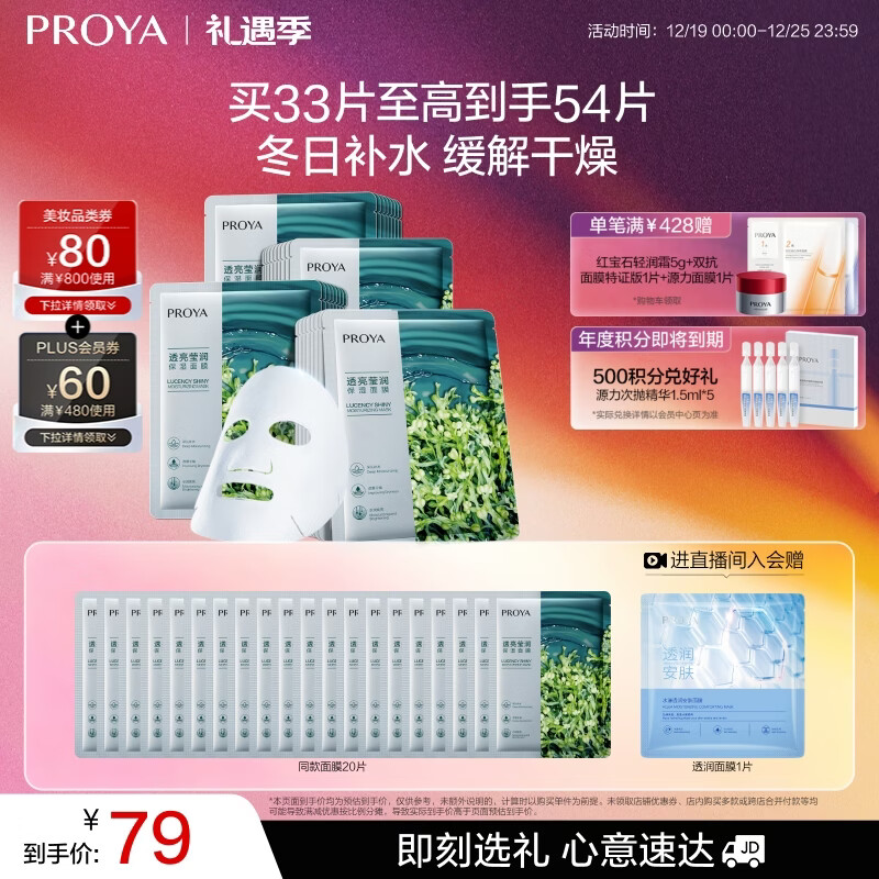 珀莱雅(PROYA)面膜 小球藻面膜 保湿海藻面膜补水面膜女男20片