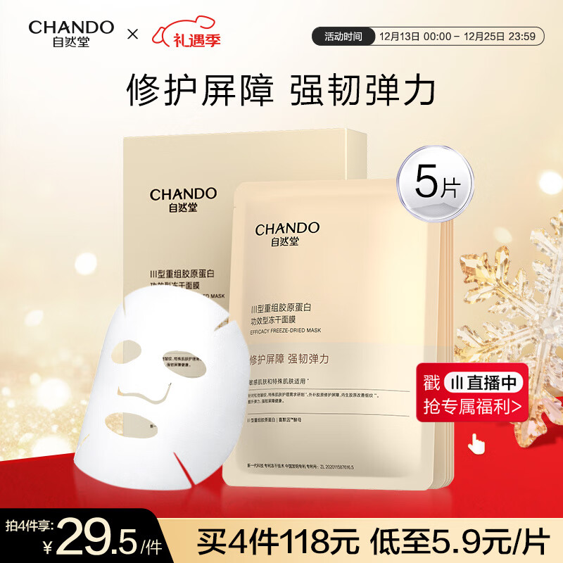 自然堂干胶原面膜0.65g×5片修护抗皱紧致敏肌可用