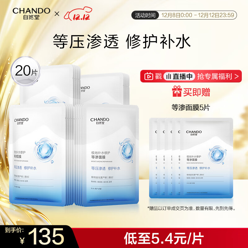 自然堂极地补水修护等渗面膜20片 舒缓温和水润护肤品套装圣诞礼物