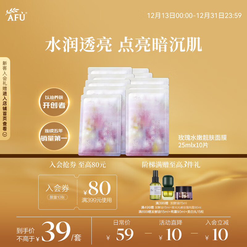 阿芙(AFU)【李兰迪代言】玫瑰面膜25mlx10片 保湿补水 圣诞礼物