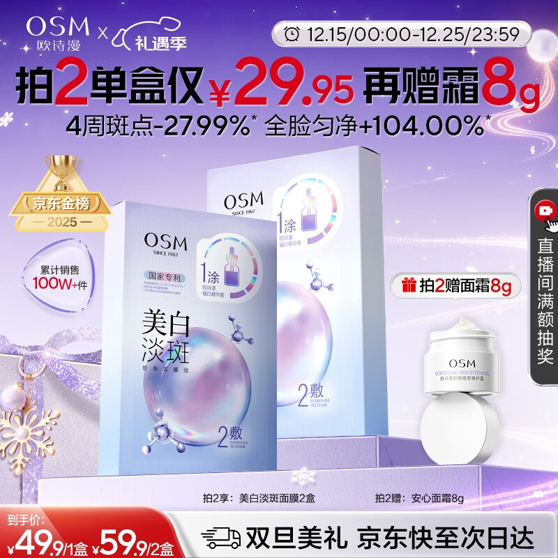 欧诗漫(OSM)珍珠美白面膜金榜补水保湿淡斑痘印去黄提亮男女5片/盒 圣诞礼物