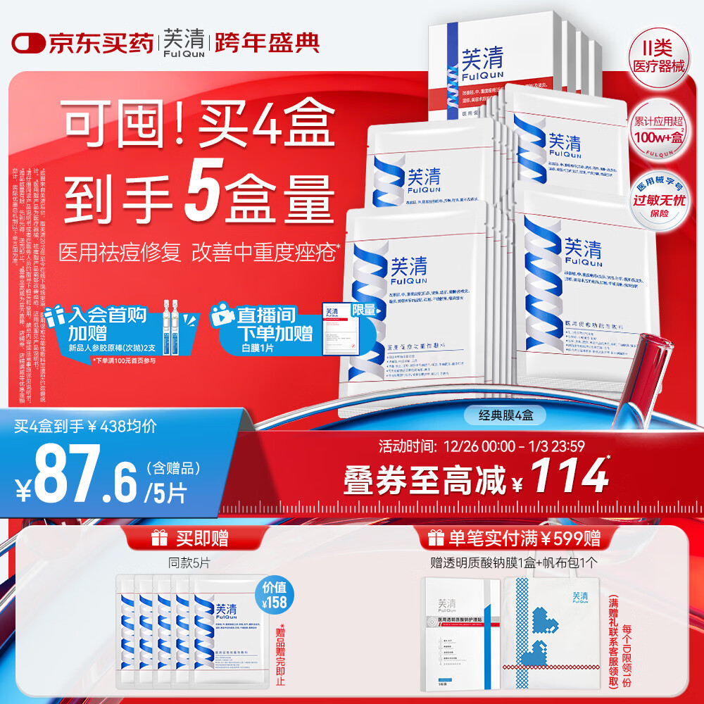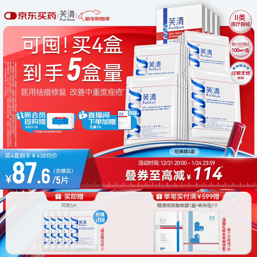 芙清医用促愈敷料面膜型4盒 经典膜械字号凉茶祛痘改善痤疮皮炎