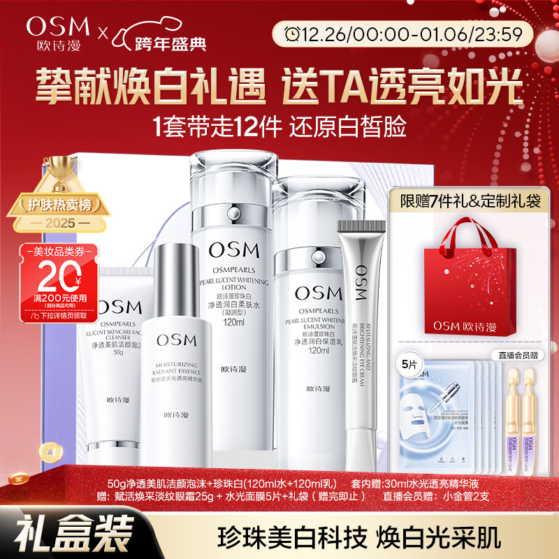 欧诗漫(OSM)珍珠白洁面爽肤水乳液精华套装美白淡斑护肤品面膜眼霜新年礼物