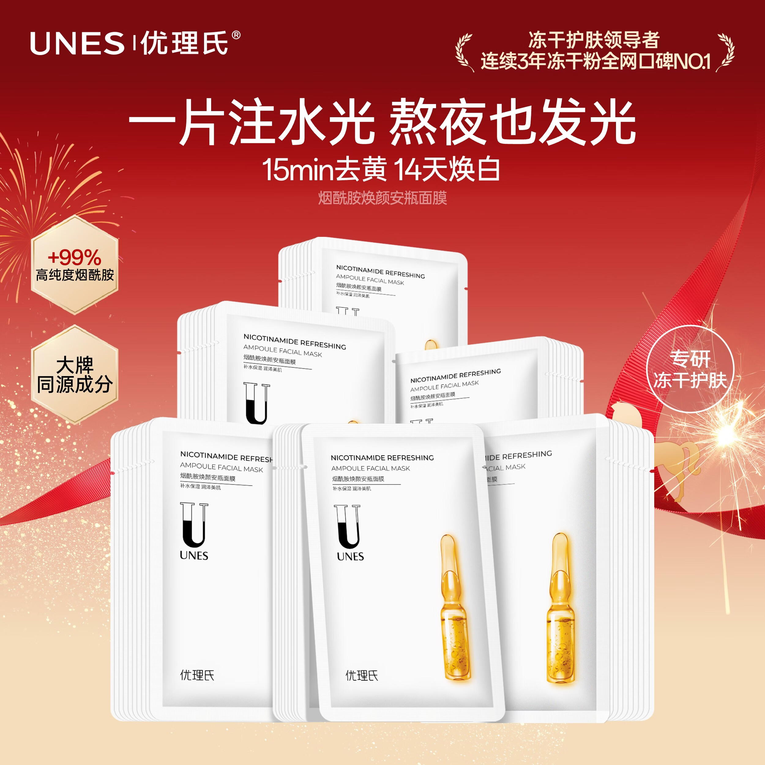 优理氏(UNES)8D玻尿酸烟酰胺蚕丝面膜补水深层清洁滋润熬夜提亮肤色平衡保湿 烟酰胺提亮补水面膜【20片】盒装