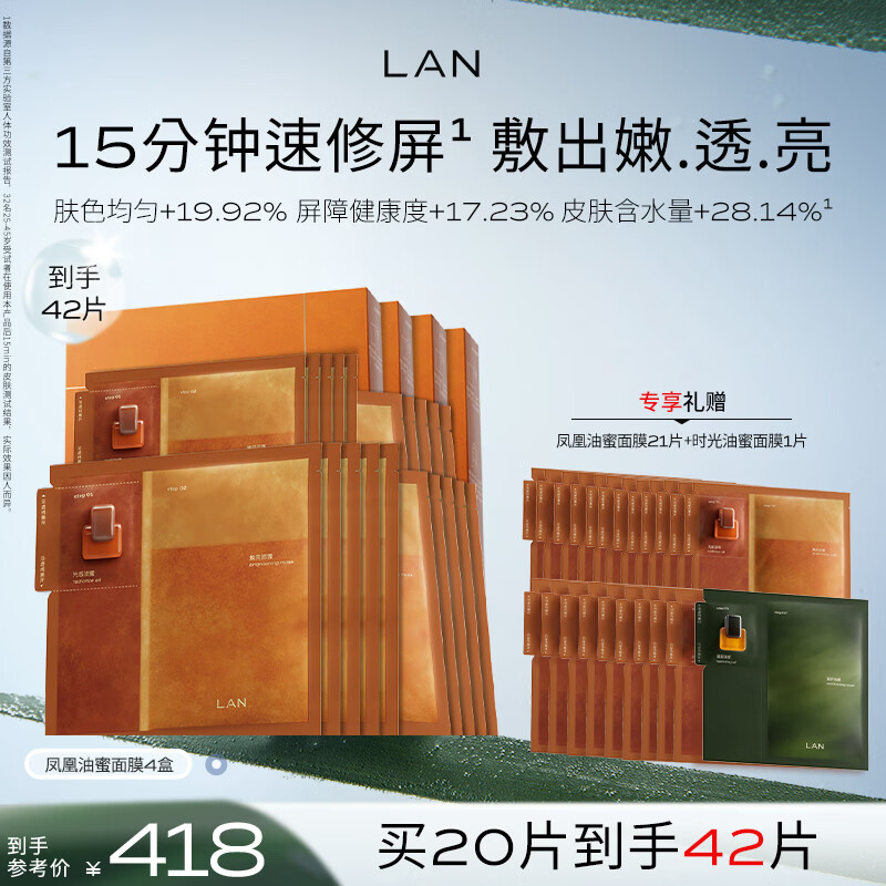 蘭(LAN)【新品上市】兰凤凰油蜜面膜抛光焕亮保湿补水油敷面膜礼物4盒装