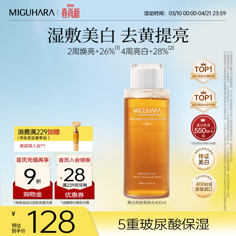 咪咕哈啦(MIGUHARA)湿敷水面霜面膜精华水进口护肤套装美白祛斑去黄提亮补水保湿女 美白湿敷水400ml