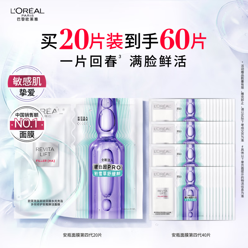 欧莱雅安瓶面膜4.0含赠到手60片补水保湿修护舒缓护肤品生日礼物送女友