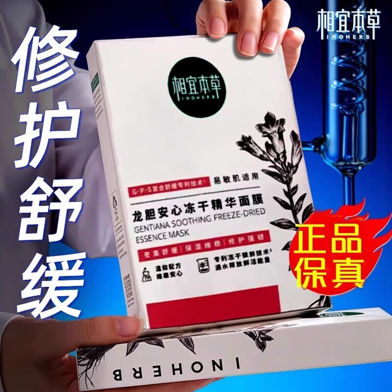 相宜本草龙胆安心舒润乳液修护冻干精华面膜保湿维稳舒缓补水女士冬季正品 龙胆冻干精华面膜5片/盒可积分