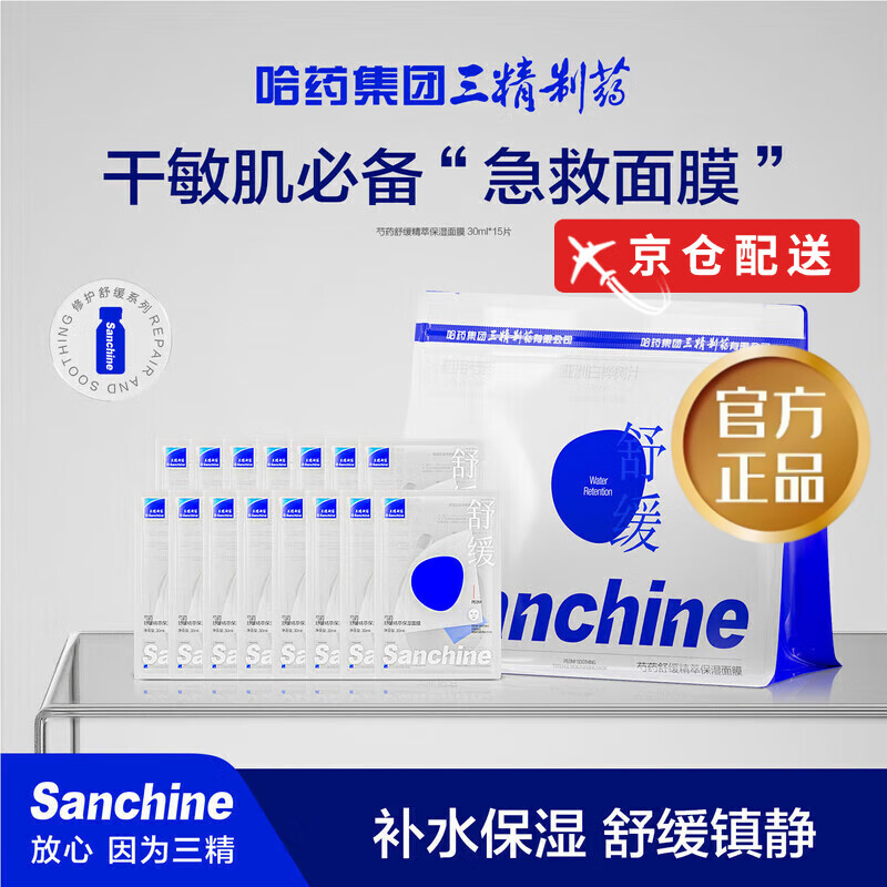 三精制药护肤品【正品直售】芍药舒缓保湿面膜抗皱紧致修护舒缓【现发】 正装 芍药面膜15片/一袋