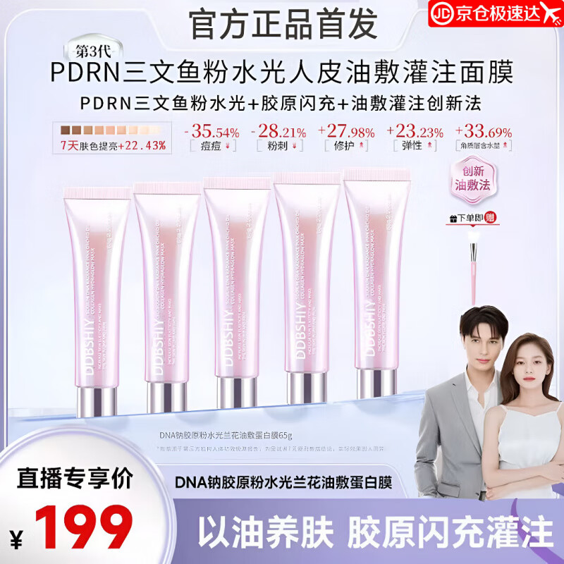 DDBSHIY【韩国同款】DNA钠胶原粉水光蛋白膜PDRN三文鱼粉人皮撕拉面膜 5支周期装+1刷