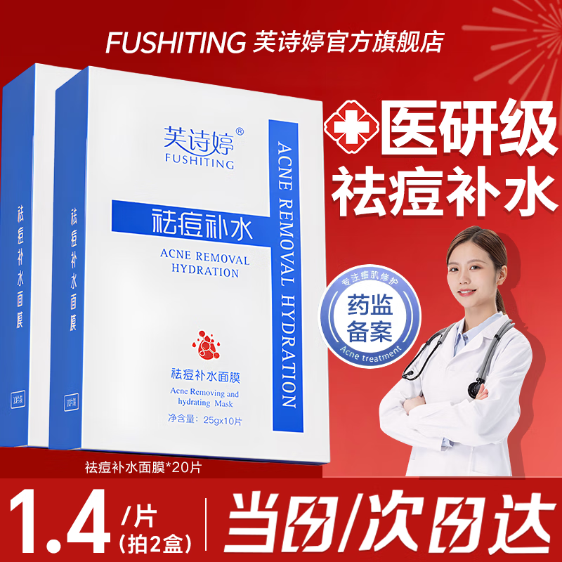 芙诗婷祛痘面膜补水保湿祛痘印控油祛痘毛孔收缩嫩白去黄气暗沉提亮肤色 祛痘补水面膜20片 10片/盒